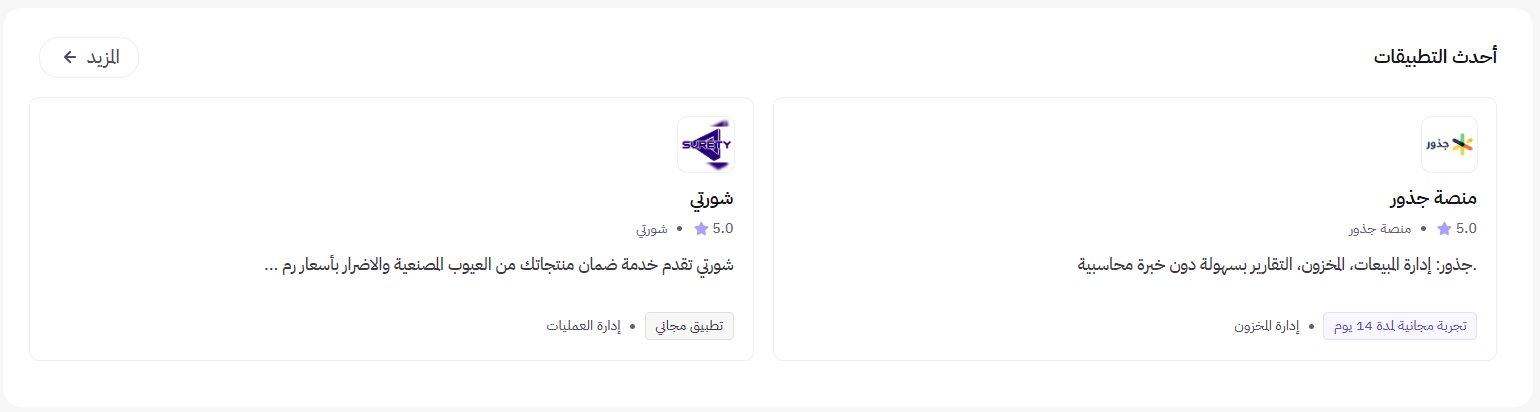 يوفر حلول زد مقترحات مختارة لتطبيقات تساعدك في نمو تجارتك ورفع كفاءة متجرك التشغيلية حسب حاجتك.